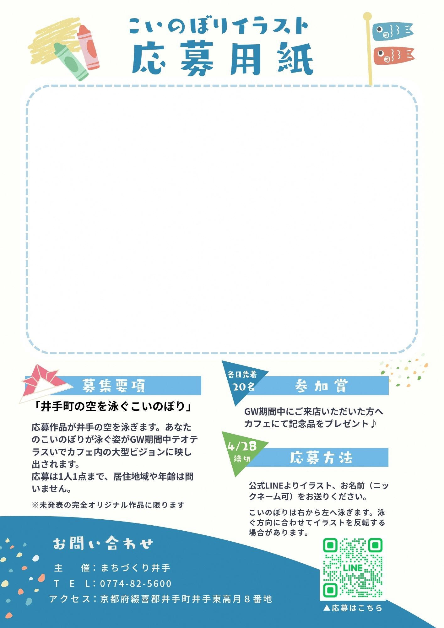 今年度は「井手町の空を泳ぐこいのぼり」としまして、皆さまのこいのぼりのイラストがGW期間中
